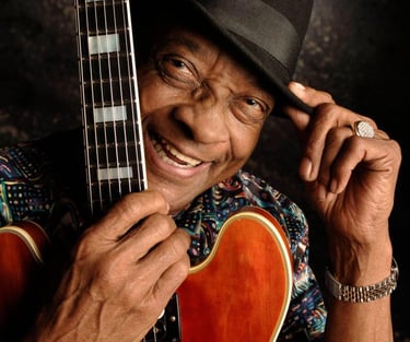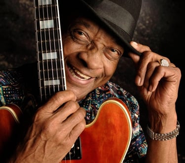 The man introduced onstage as "...the undisputed King of the Blues", ranked #3 on Rolling Stone Magazine’s list of the "Top 100 Guitarists", won 15 Grammy Awards, played over 10,000 gigs during his career, sometimes working 250 nights in a year. Influenced by a range of guitarists from Lonnie Johnson and T-Bone Walker to Django Reinhardt and Charlie Christian, B.B. was always adding to his repertoire. This “blues ambassador” crossed musical genres and in his 89 years directly influenced more rock guitarists than any other bluesman, and did more to bring blues to world audiences than anyone else. B.B passed in 2015.