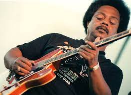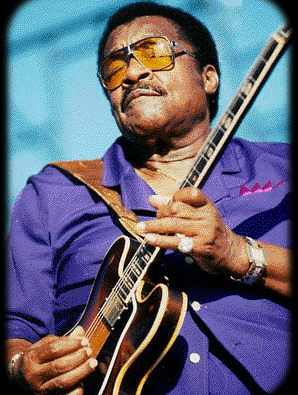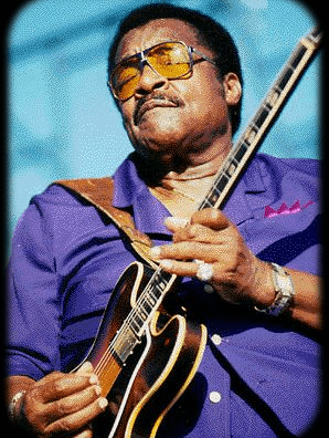 No discussion of great contemporary blues guitarists would be complete without Mr. Albert King. His was “the Memphis Sound”. A huge man, pipe clenched between his teeth, his Flying V guitar cradled as he bent the strings mercilessly, the horn players doing dance steps in unison. Albert rocked arenas around the world. His influence is evident in players from Otis Rush to Jimi Hendrix and he was the inspiration to a generation of blues guitarists including SRV.