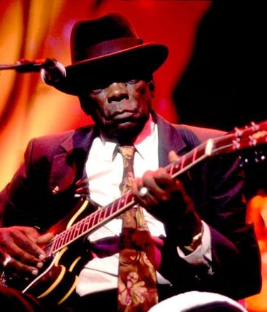 Hooker began performing in Memphis in the 1930s, moving on to Detroit in 1948. A favorite with fellow blues and rock musicians and fans, he was billed as “The King of the Boogie”. He recorded often (and under many different pseudonyms) as a solo artist - guitar, vocal, and tapping foot; with his band; and with other performers, including Carlos Santana, Bonnie Raitt, and Van Morrison. In 1989 he appeared as the title character in Pete Townshend's “The Iron Man: A Musical”.